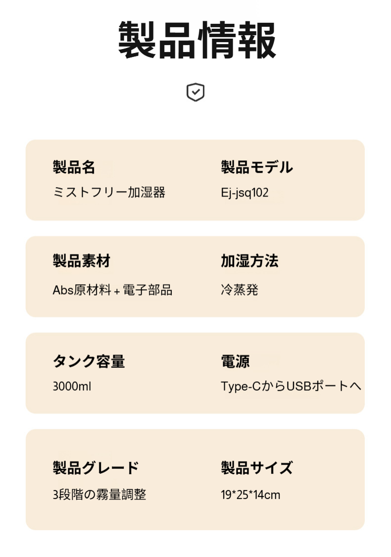 ミストフリー加湿器の外観